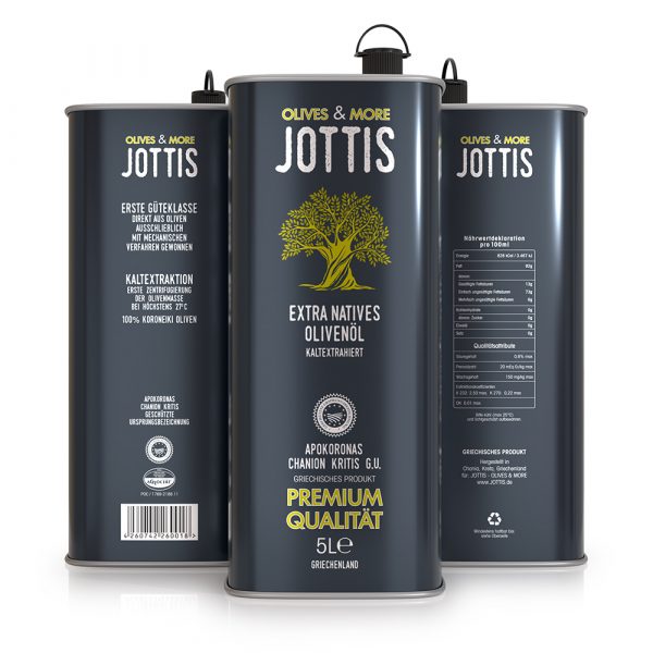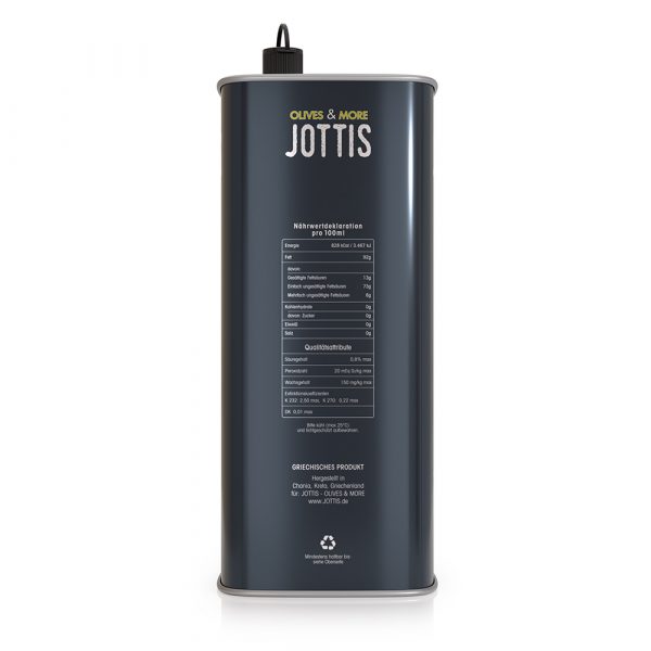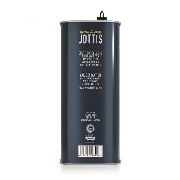 Das Extra Native Premium-Olivenöl von JOTTIS stammt ausschließlich von der Koroneiki-Olive – einer traditionellen Sorte, die in den felsigen Höhenlagen Kretas unter idealen klimatischen Bedingungen gedeiht. Die Oliven werden sorgfältig von Hand geerntet und innerhalb weniger Stunden kalt extrahiert, um wertvolle Polyphenole, Vitamine und natürliche Aromen zu bewahren. Dabei wird in jeder Produktionsstufe auf höchste Reinheit geachtet: Die Zentrifuge wird regelmäßig und ausschließlich für unsere Oliven gereinigt.